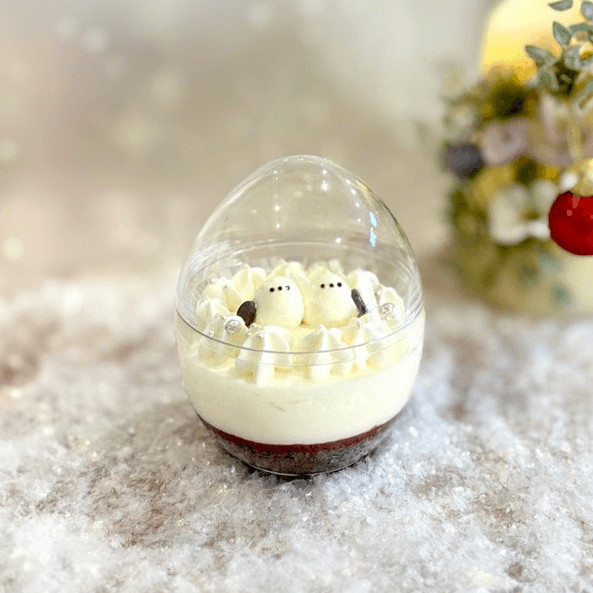 店内での通常ケーキはいつもより少し大きめ!スノードーム風シマエナガケーキです。