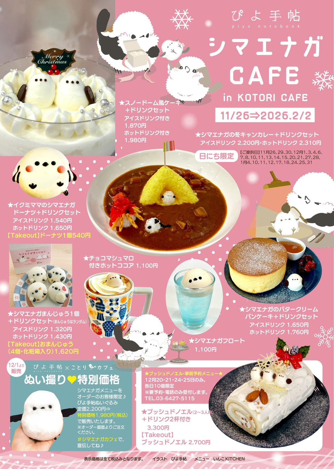 11月26日〜2026年2月2日の2ヶ月間、グッズもカフェメニューもシマエナガだらけで店内うめつくされます。